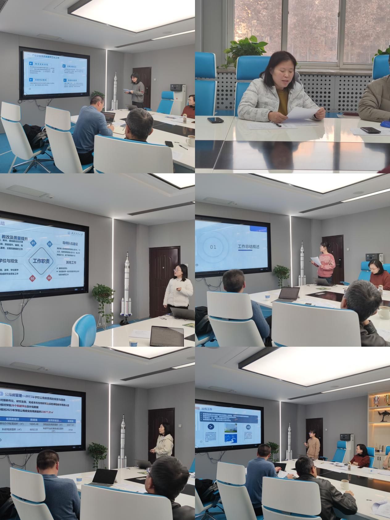 在航空楼B416会议室召开机关年度考核暨总结会,学院领导班子及机关全体工作人员参会,会议由办公室主任何敏主持。