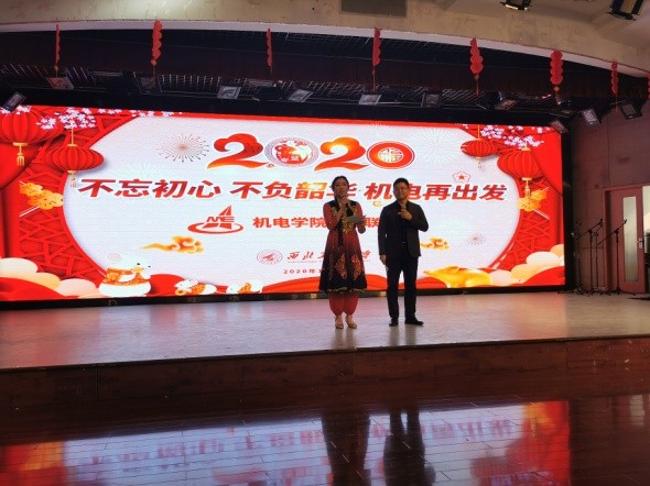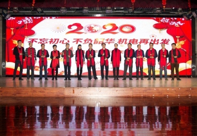 在健翔楼举办了一年一度的教职工迎新春联欢会,五楼多功能大厅大型LED屏上绚丽的显示出今年联欢会的主题是“不忘初心,不负韶华,机电再出发”。会场被布置得的错落有致,充满了欢乐、喜庆的气氛。学院工会的工作人员在入口处热情地欢迎学院的教职员工,并为大家发放进门礼和抽奖奖券。