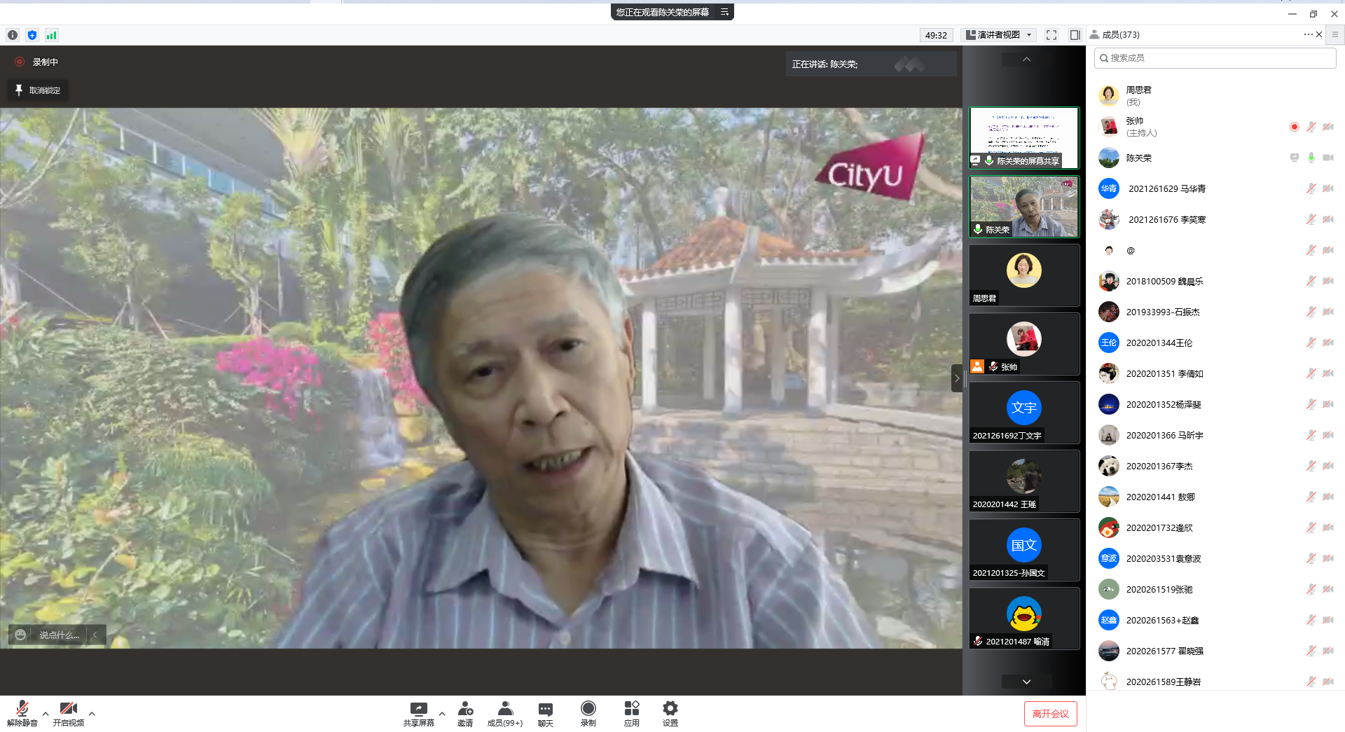 2022年4月15日上午,学院邀请IEEE Fellow、欧洲科学院院士、发展中国家科学院院士、三次国家自然科学奖获得者、香港城市大学陈关荣教授以腾讯会议形式作了关于科研与创新的学术报告,杏吧
