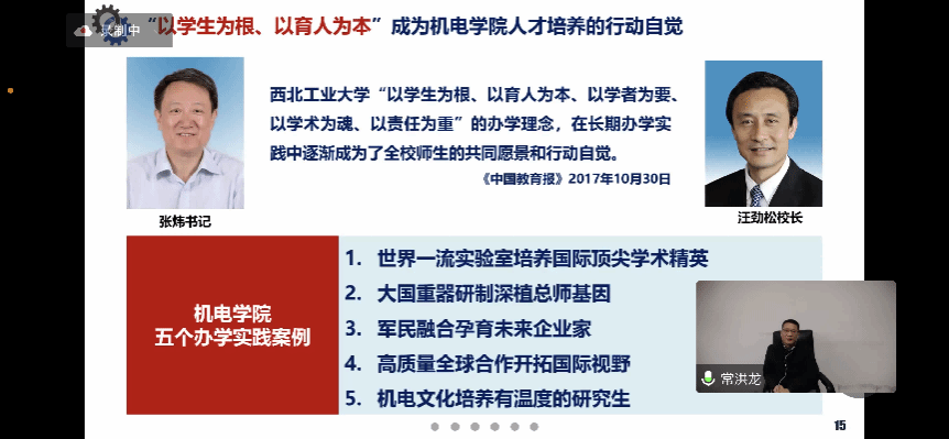 院史、院情,强调研究生导师要贯彻执行“以学生为根、以育人为本、以学者为要、以学术为魂、以责任为重”的“五个以”办学理念。其中,要重点贯彻“以学生为根、以育人为本”,并结合五个办学实践案例,表达了对研究生导师的期许。