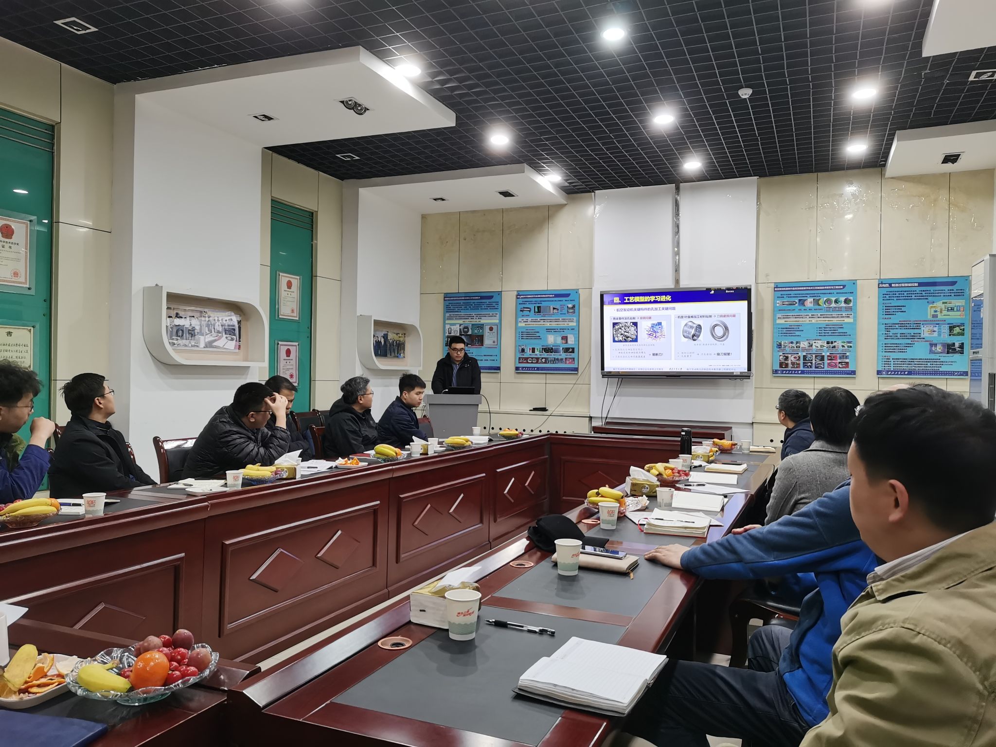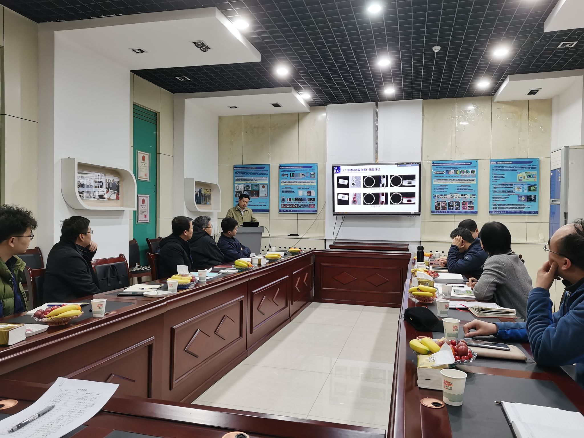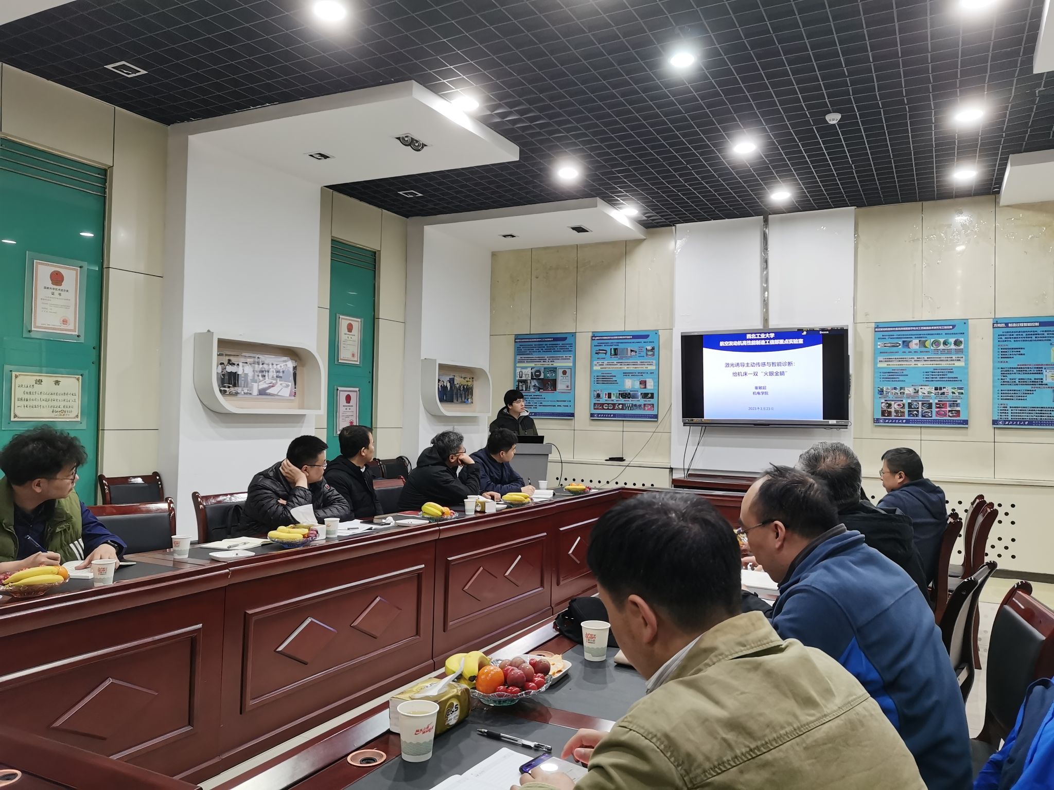 王明微书记介绍了党支部的基本情况并强调了学习宣传全国“两会”精神的重要性。随后,李波书记介绍了西安航天发动机有限公司35车间党支部的基本情况以及学习“两会”精神的相关党建活动。西安航天发动机有限公司35车间梁相鹏主任及重点实验姚倡锋主任相互介绍了各自单位的基本情况和工作重心。随后,大家一起参观了重点实验室,实验室刘维伟、黄魁东、程云勇、崔敏超、张钊等老师分别介绍了自己的相关科研工作。