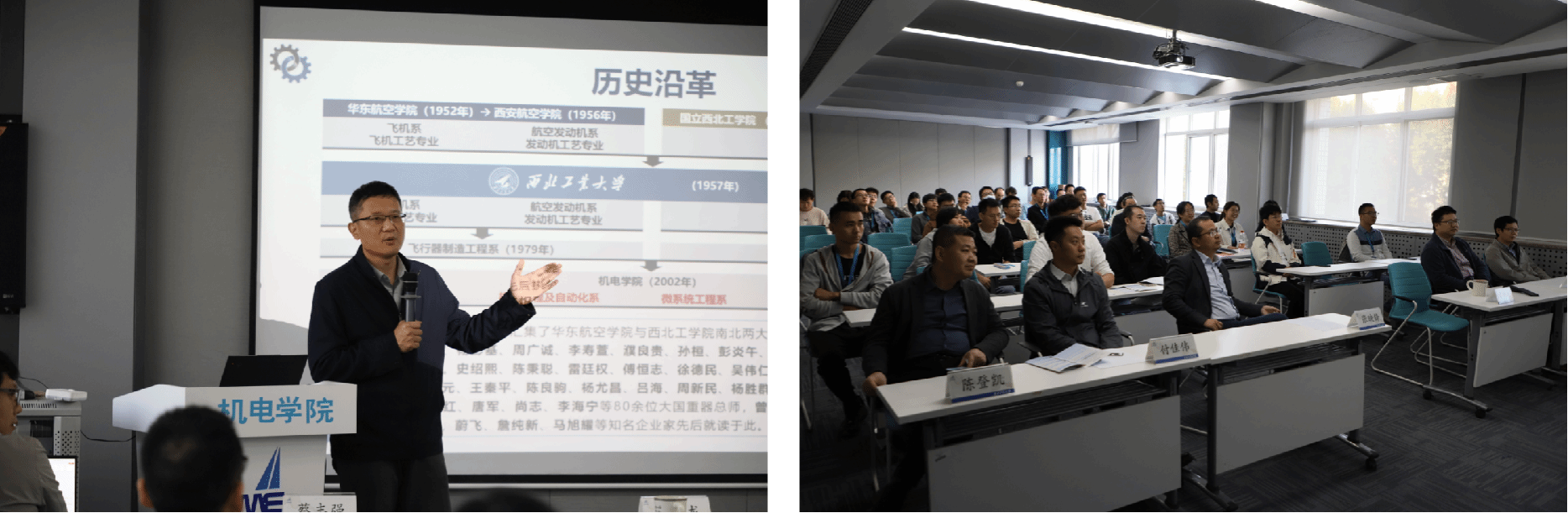 为了与青年学者交流更加充分和深入,论坛分为航宇和微纳技术、机械设计与制造、智能制造与人机设计三个专场,分别在航空楼B410室、B412室、B416室举行。青年学者以PPT形式进行了学术汇报,向与会人员展示了他们在学术领域的创新和突破。每位学者汇报后,教师们积极提出问题、给予反馈,并与青年学者就研究方向、方法论及未来发展方向进行了深入的讨论。