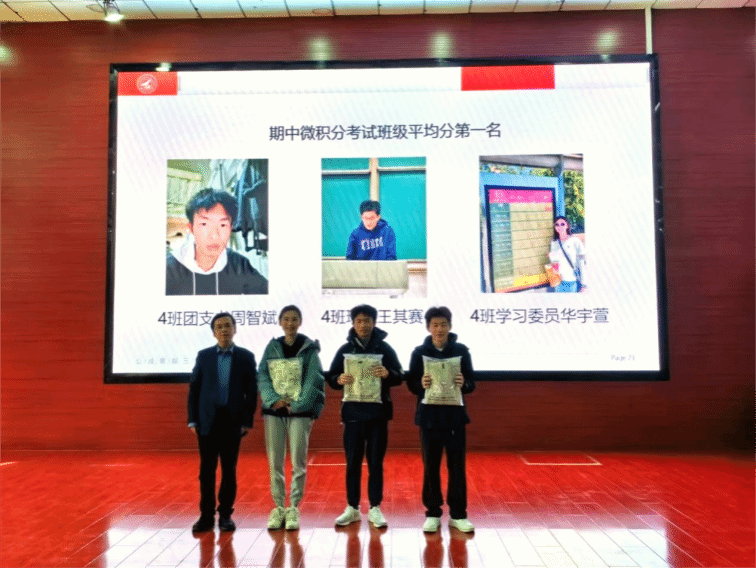 于长安校区教学西楼D100教室举行了2023级本科学期中期总结暨表彰大会,学院党委副书记高峻、辅导员宗立军和王渊彬出席了本次大会。本次大会旨在回顾过去半学期的年级活动和微积分期中考试情况,总结经验教训,同时通过表彰优秀学生,树立榜样,激励全体同学积极向上,不断进步。