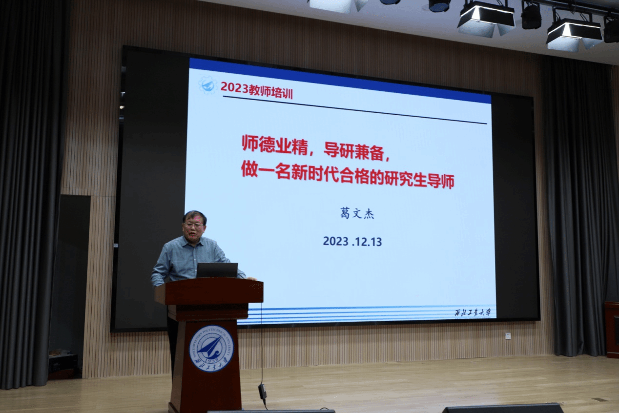 葛文杰教授做《师德业精,导研兼备,做一名新时代合格的研究生导师》主题报告。葛教授从自身做为大学教师的成长之道出发,对不同阶段的教师提出了指导性建议,认为教育不仅仅是工作,更是责任、热爱和奉献。葛文杰教授强调:做一名大学教师就要做好教书育人的工作,要用“心”教育;要以“师德业精,导研兼备”理念,注重以身作则的同时亦关注学生、注意团队协作,处理好教学、科研与人才培养的关系;要潜心教研、精心育人,培育出更多为国铸剑,隐姓埋名的总师型人才。