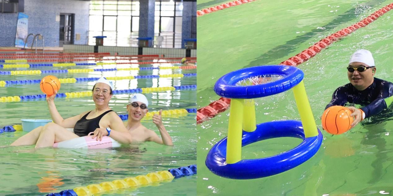 本次运动会采取“任务闯关”方式进行,游戏场地为每组一条50米泳道,每组需从泳道起点至终点依次完成水中捞月、水中健步走接力、水中宝宝接力、水中投篮四个任务,并最终触碰终点铃铛结束游戏,用时最少的组获胜。