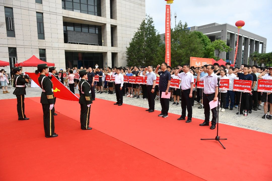 管峻为学生党员代表贾常真授旗,高扬的党旗激励西工大青年党员胸怀“国之大者”,勇担使命,为国家贡献青春力量。