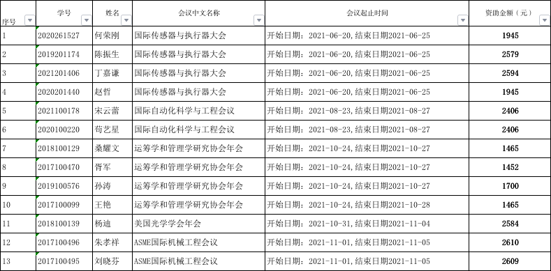 2021年杏吧 研究生国际会议资助(第二批)名单公示