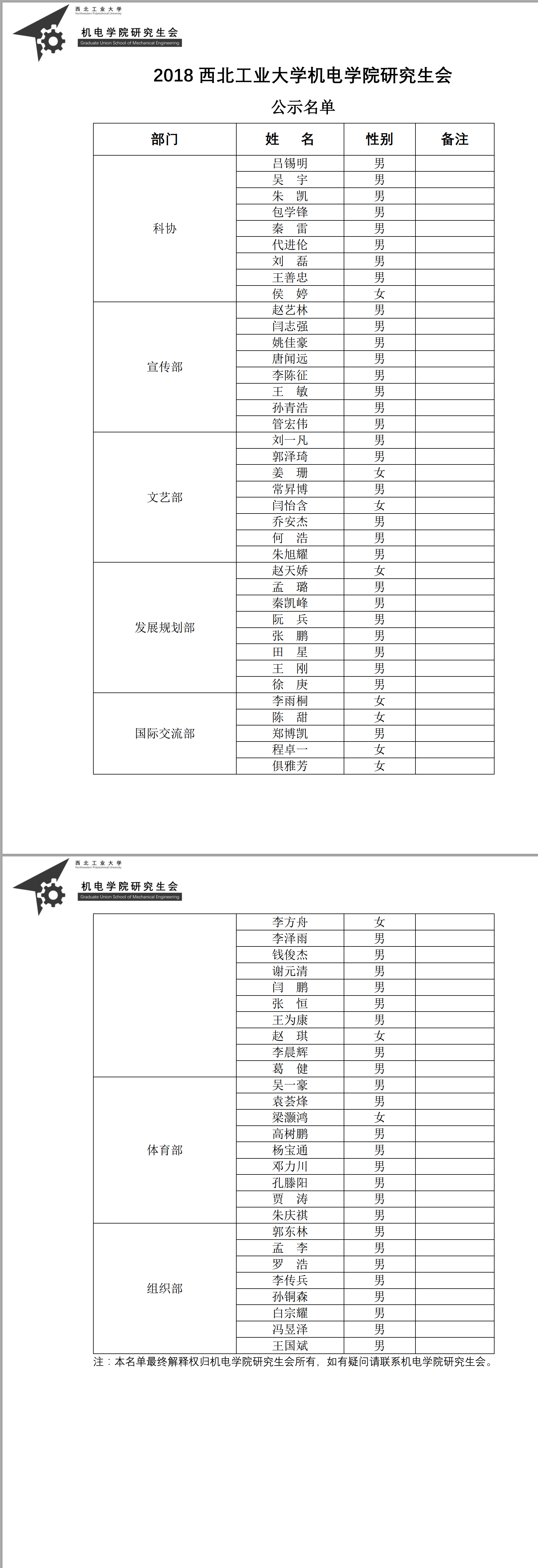 研会纳新公示名单如下: