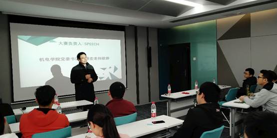 党委副书记(主持工作)朱继宏老师上台致辞,朱老师向同学们展示了往届的作品,并说明了比赛最后的测试方式,最后朱老师预祝各参赛队员取得圆满的成绩。