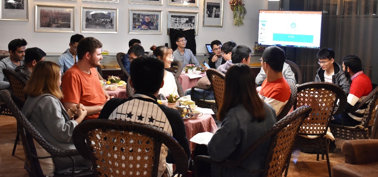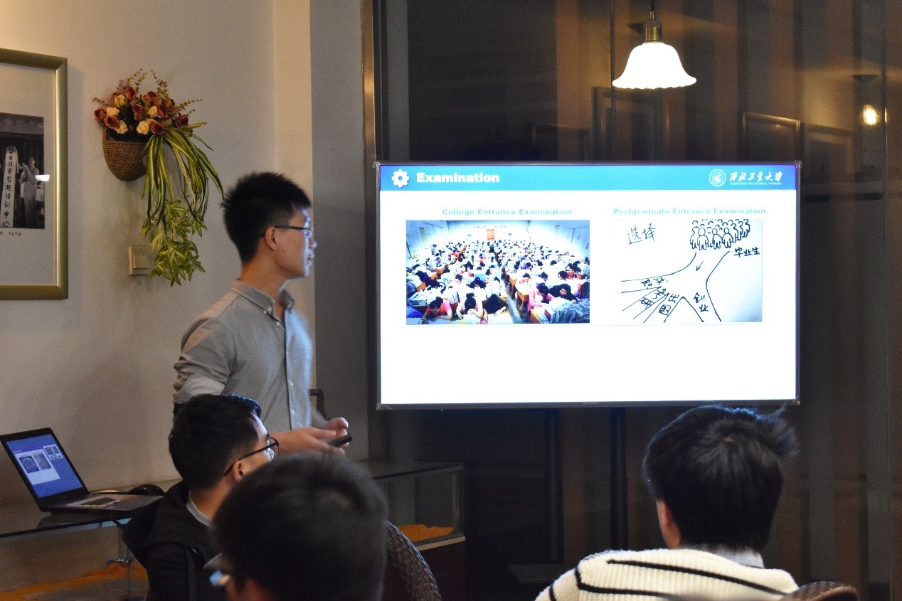 活动开始,同学们进行了简短的自我介绍之后,自由组合成四个小组对以“教育”为主题的六个问题进行自由讨论,主要讨论了自己所在国家的教育模式是怎样的。比如,通常来讲,中国的教育机制包括小学教育(6年)、初中教育(3年)、高中教育(三年)、本科教育(4年)、研究生教育(3年)以及博士教育(5年)。